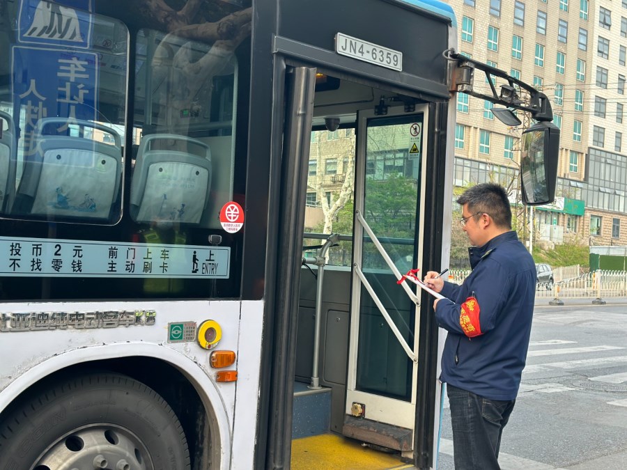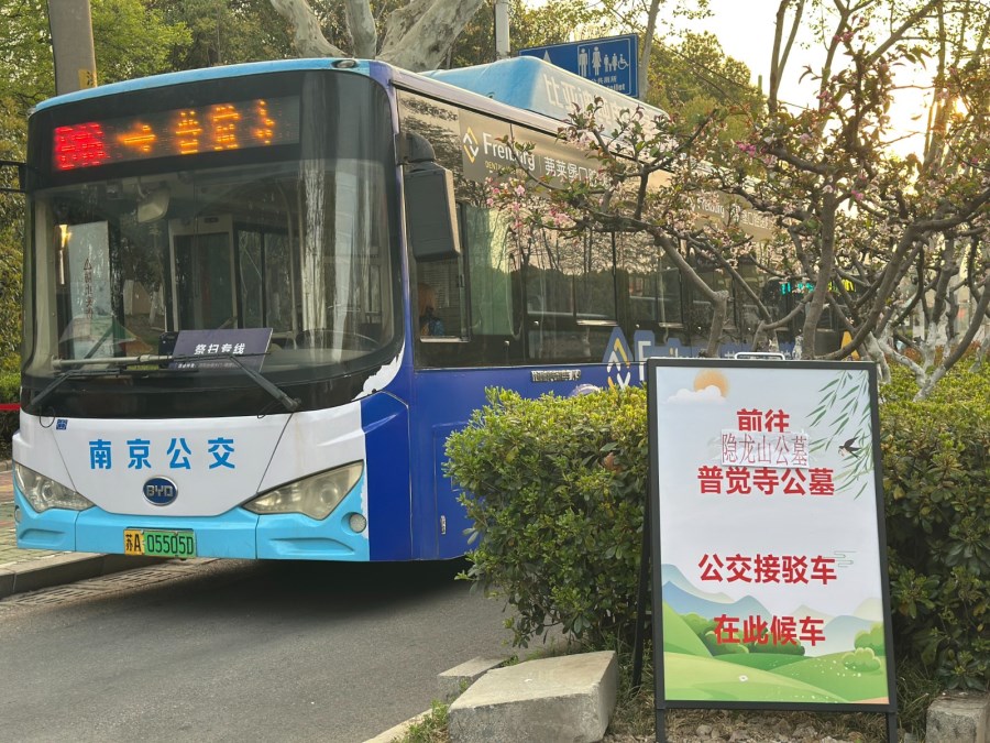 凌晨六点的城市尚未苏醒,雨花台南大门的公交站台上,公交人就已经开始忙碌起来了,今天支援B16路和B17路的驾驶员们正在擦拭车窗上"清明专线"的蓝色标识,让乘客们能更清楚地看到这班特殊专线的牌子。