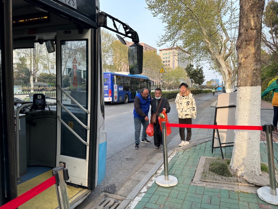 引导台、排队隔断带,全部安排到位。 蓝马甲志愿者们井然有序的站在车门边上,眼观六路,耳听八方,随时观察着有需要帮助的乘客。清明祭扫是清明节的核心习俗,表达对先人的怀念和孝道,并且老年乘客较多,手上携带着对离世亲人的寄托纸币、鲜花等到墓前。“580”志愿者们,看到行动不便的老年人,主动上前,给予最温柔的微笑和温暖的帮扶,并嘱咐老人们慢点。周围乘客看到此情景也纷纷表示赞扬。这也让公共服务呈现出超越运输工具的精神向度。