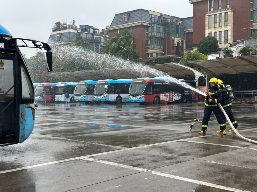 11月7日上午9点半,南京公交第四客运公司汽车四队在雨花台南大门场站与雨花台烈士陵园消防救援站开展了一场消防演练,为城市公共交通安全再添一道坚实防线。