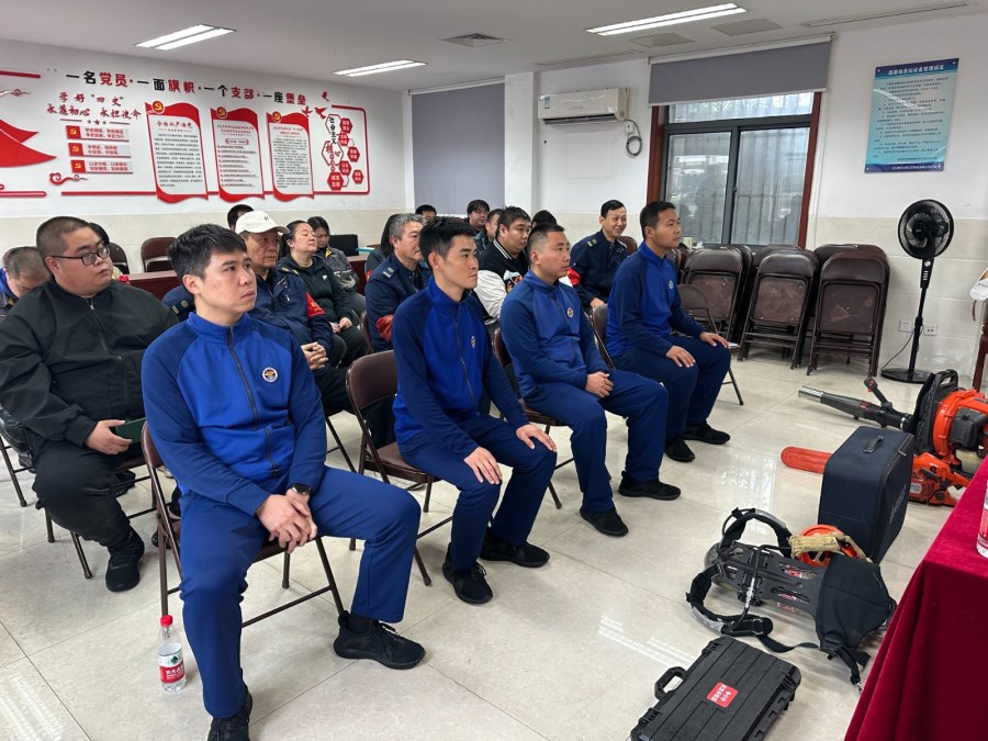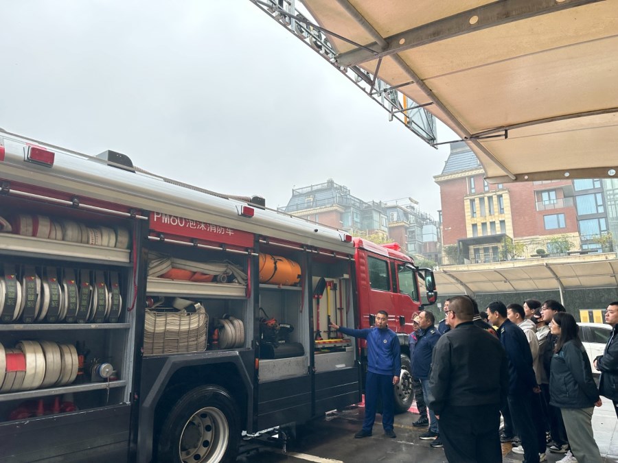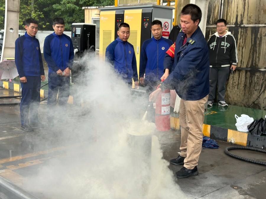 演练当天,先由车队安全队长李元给到场人员详细介绍了车载动力电池火灾事故应急操作,以及停车场火灾处置流程。随后雨花台烈士陵园消防救援站消防员王成队长以及队员们,给大家讲解了各类消防器材正确使用方法,以及遇到火灾时扑救火灾、逃生自救等应急处置方法。