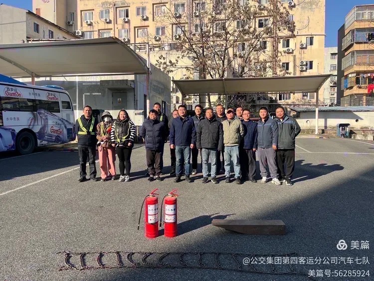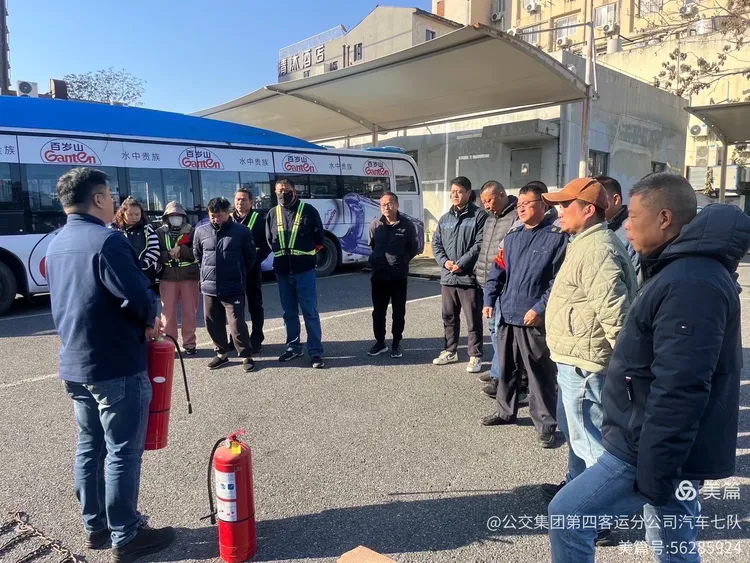 为强化职工安全应急处置能力,筑牢冬季公交运营安全防线,11月18日下午14点,南京公交集团第四客运公司汽车七队在大桥南路停车场成功举办特殊天气应对暨消防灭火应急演练,重点开展灭火器实操与防滑链安装培训,驾驶员及相关岗位人员参与演练。