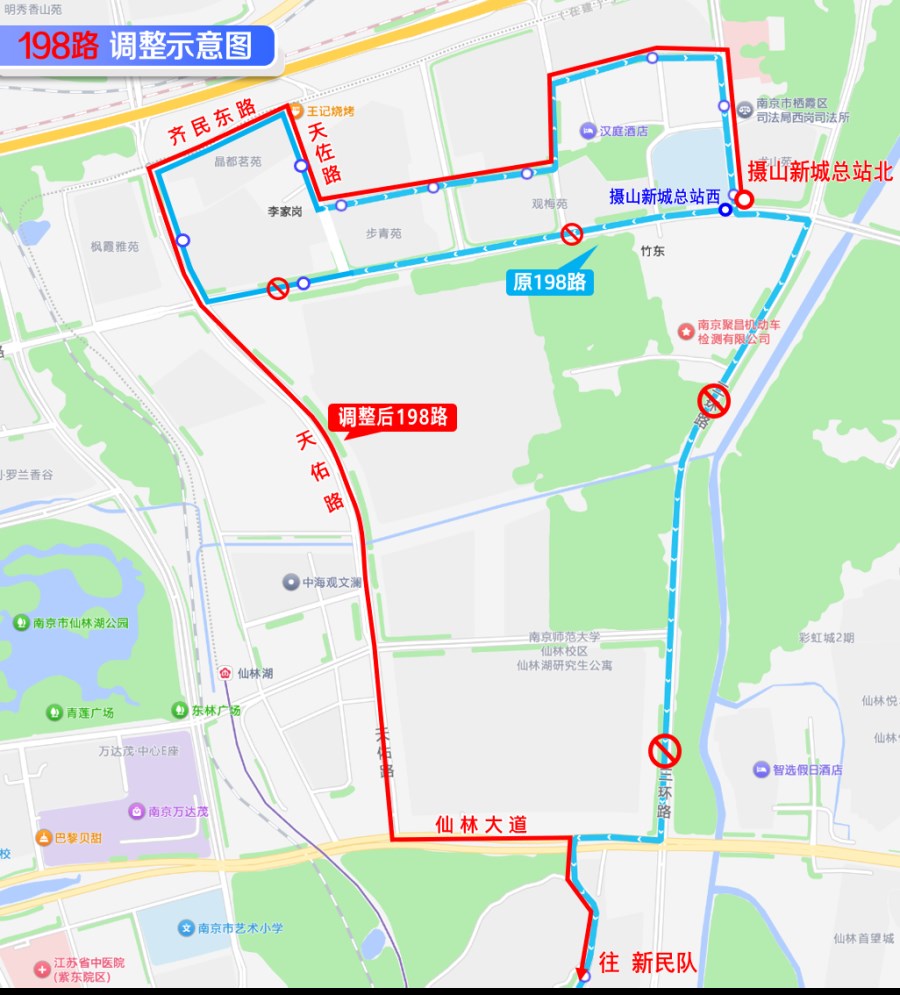 * 撤销站点:天佑苑、摄山新城总站西。