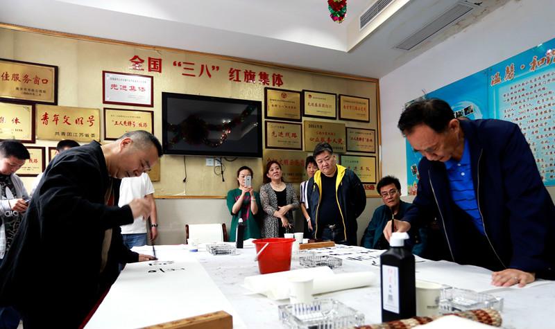 南京市第十二届金陵五月风作品进车厢活动的启动仪式上,南京市书协执行主席王刚,南京市书协副主席陈金纯,南京市书协副秘书长黄征,南京市书协理事刘敏、刘长平、宋骞,中国书协会员孙玉杰等书法家们参加并现场书写作品,送给公交车队和公交驾驶员们。