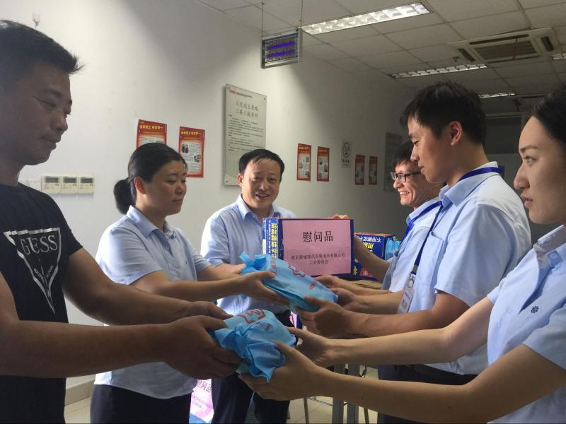7月17日下午,现代电车公司总经理苏锋、党支部书记范家政分别带队赴麒麟有轨电车、河西有轨电车站台,车辆基地,慰问了高温下坚守岗位的电车员工和委外单位线路保障人员,为他们送上慰问品及清凉饮料。