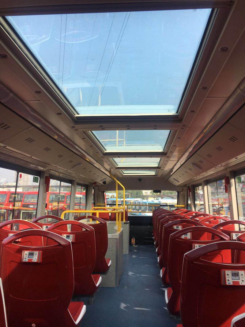 >>> 回归后更加“高大上” 本次回归的“双层观光巴士”是南京公交集团与春秋集团联合推出的2条旅游观光专线,车型十分“高大上”,是纯电动驱动的双层观光巴士,由南京双诚观光巴士有限公司运营。线路所有车辆均为红色双层巴士车身配靓丽的南京古城图案,二层设全景玻璃天窗,让游客能全方位、无死角地欣赏车外的景色。据了解,南京运行的双层观光巴士采用“零排放”设计,为了安全严格限制行驶速度,在上层还禁止行驶时站立。南京也是继上海、广州,第三个在国内开通双层观光巴士的城市。