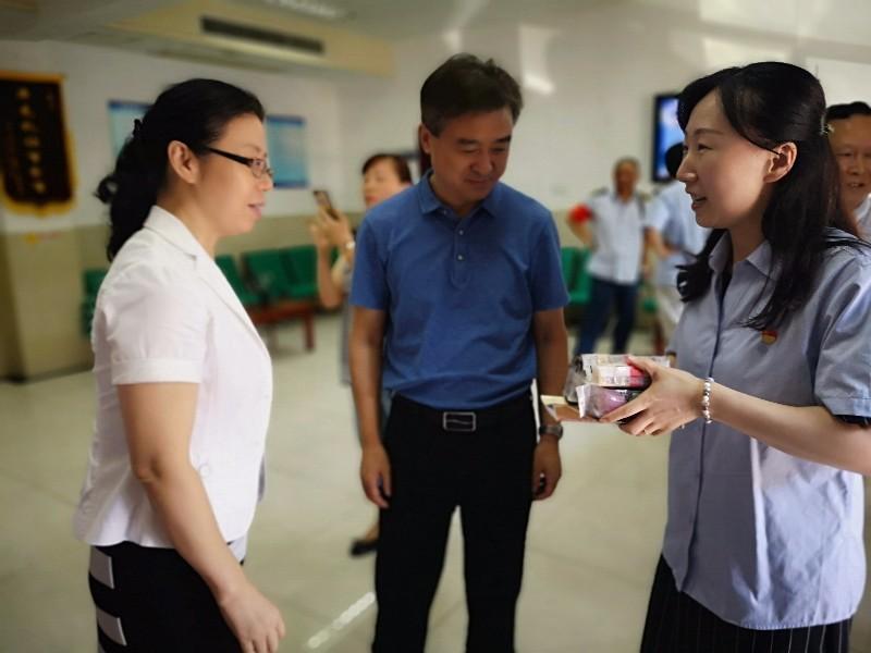 曹书记和苏主席将慰问品递到大家的手中,一边关切地询问大家工作情况、身体情况,鼓励大家“战高温、保生产”,一边叮嘱身边的车队负责人一定要关心关爱好员工,把早餐供应落实好、把防暑降温工作做到位,合理安排人员班次,尤其要保证一线驾驶员有足够的休息时间。