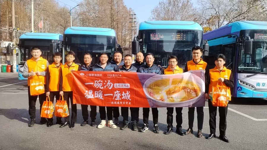旁边的几位司机师傅看到这一幕,也纷纷围了过来。公交司机朱蕴海笑着说:“这几天天气降温,这鸡汤来得太及时了!”。公交司机每天重复着单调而辛苦的工作,常常为了准点发车而顾不上吃饭,很少有时间停下来感受这份温暖。而这一碗鸡汤的温度,会在“公交人”的心中持续蔓延,化作在岗位上坚守的动力,带着这份温暖,继续安全平稳地驾驶公交车,穿梭在南京的每一条道路上,为南京这座城市的正常运转贡献自己的力量,也让这份爱与温暖在城市中不断传递下去。