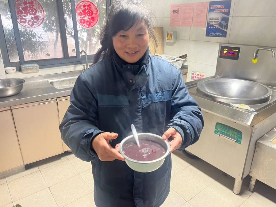 接过腊八粥,驾驶员林师傅露出灿烂笑容:“腊八节能喝到队里准备的热粥,心里暖乎乎的。”腊八节送腊八粥是车队的传统,希望通过这碗粥,向坚守岗位的驾驶员表达敬意,更好地为市民乘客出行提供安全保障和优质服务。