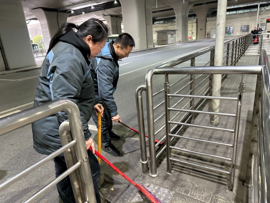 除了为乘客提供贴心服务,志愿者们还积极投身到站台环境亮化工作中。站台上的灯箱小广告不仅影响美观,还破坏了城市的形象。志愿者们带着清洁工具,仔细地清理着站台灯箱上的小广告,使我们的站台灯箱焕然一新。同时,志愿者们还对站台周围随意停放的自行车、电瓶车进行了规整摆放,让站台周边的环境变得更加整洁、有序。