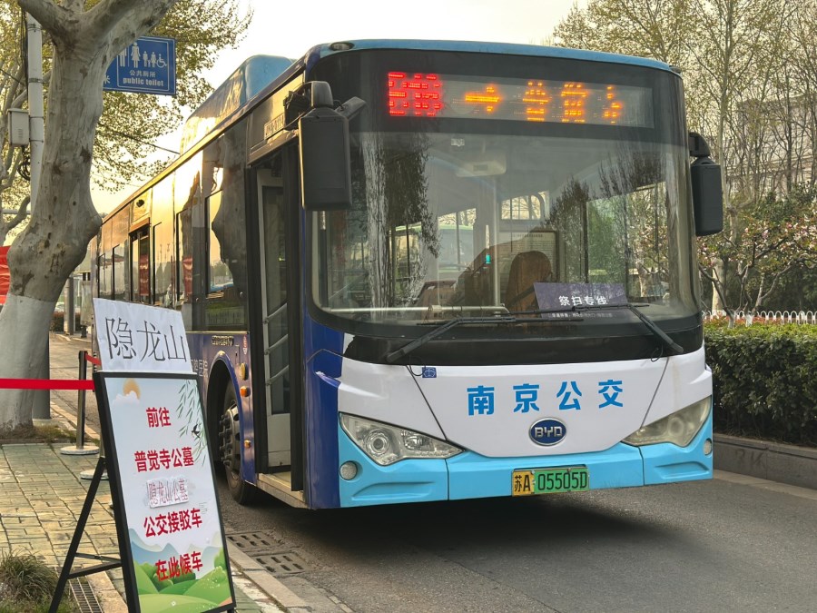 凌晨六点的城市尚未苏醒,雨花台南大门的公交站台上,公交人就已经开始忙碌起来了,今天支援B16路和B17路的驾驶员们正在擦拭车窗上"清明专线"的蓝色标识,让乘客们能更清楚地看到这班特殊专线的牌子。