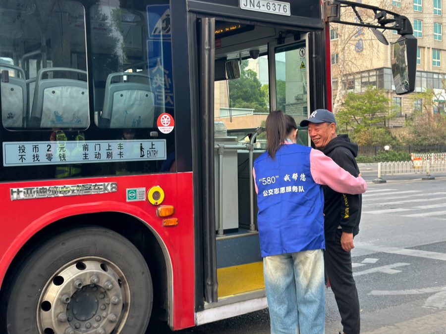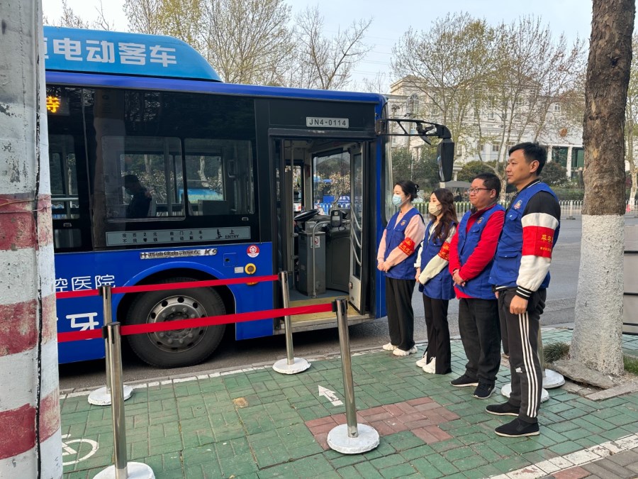 引导台、排队隔断带,全部安排到位。 蓝马甲志愿者们井然有序的站在车门边上,眼观六路,耳听八方,随时观察着有需要帮助的乘客。清明祭扫是清明节的核心习俗,表达对先人的怀念和孝道,并且老年乘客较多,手上携带着对离世亲人的寄托纸币、鲜花等到墓前。“580”志愿者们,看到行动不便的老年人,主动上前,给予最温柔的微笑和温暖的帮扶,并嘱咐老人们慢点。周围乘客看到此情景也纷纷表示赞扬。这也让公共服务呈现出超越运输工具的精神向度。