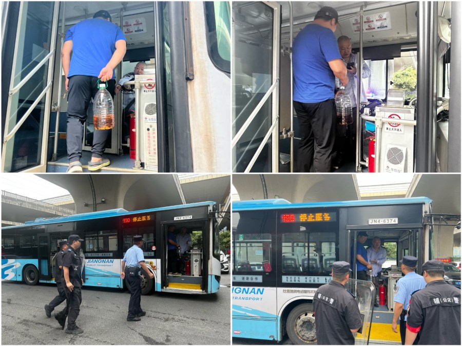 • 防恐防爆场景:模拟“乘客携带不明液体强行乘车”,汽车一队驾驶员立即停车报警,公交治安分局内保大队快速响应,携带防暴装备到场处置,成功控制“嫌疑人”并带离,全程配合默契、处置规范。