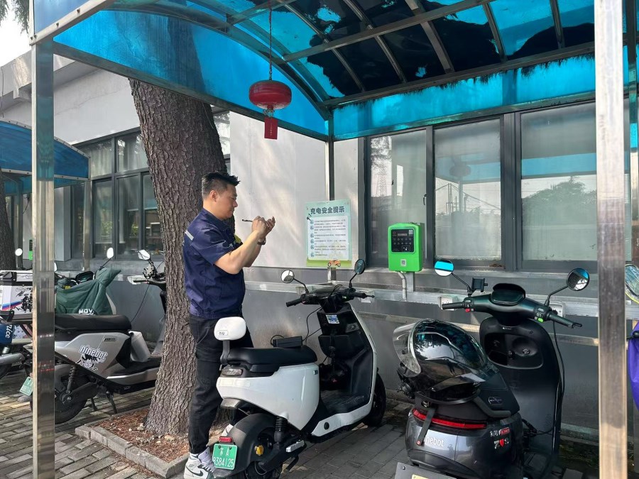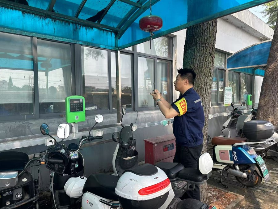 陈超深知“安全无小事,预防是关键”。他首先对车间内所有灭火弹、灭火器进行了逐一“体检”,重点检查压力是否正常、外观是否完好、是否在有效期内、放置位置是否合规且易于取用,确保这些“安全卫士”在关键时刻能“拉得出、用得上”。随后,他来到电动自行车集中充电区域,仔细检查充电桩的运行状态、线路安全及保护装置是否有效。针对“飞线充电”这一重大安全隐患,他进行了地毯式排查,不放过任何一个角落,坚决杜绝私拉乱接电线为电动车充电的危险行为,从源头上消除火灾风险点。