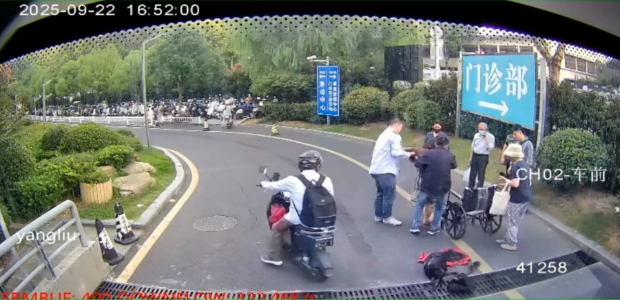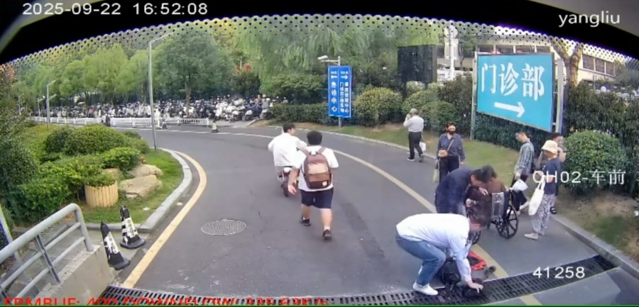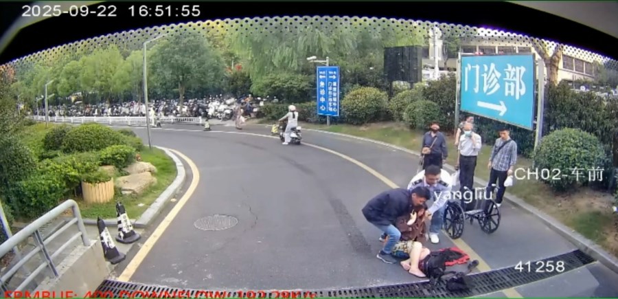 9月22日下午16时51分,南京公交集团B90就医专线司机杨福星,驾车行驶至江苏省人民医院门诊部路段时,突发意外状况,路中央一名乘坐轮椅的市民不慎侧翻倒地,轮椅上的物品散落一地,同行家属一时手足无措,急得团团转。
