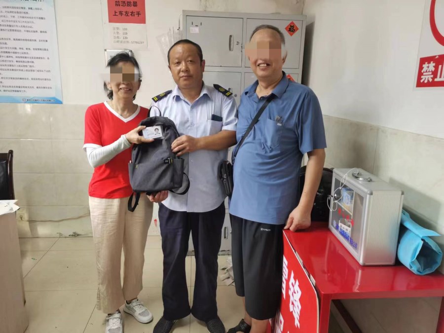 7月21日下午,一对中年夫妇乘坐D2路公交(汽车九队)在大桥南路下车时,不慎将双肩背包遗留在座椅上,包内有身份证和部分现金。这辆D2路车的驾驶员徐德龙到鼓楼底站检查车厢时发现该背包,并将包带回扬子总站上交车队。车队通过包内物品联系上这对夫妇,并约好时间让他们前来领取。据这对夫妇透露,他们近期将去外地旅游,包内物品丢了他们将无法成行,他们还对驾驶员徐师傅表示了感谢。