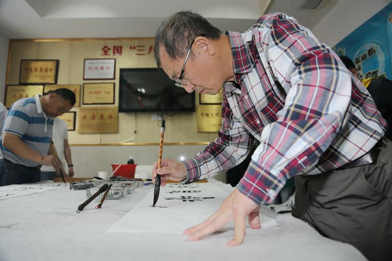 南京市第十二届金陵五月风作品进车厢活动的启动仪式上,南京市书协执行主席王刚,南京市书协副主席陈金纯,南京市书协副秘书长黄征,南京市书协理事刘敏、刘长平、宋骞,中国书协会员孙玉杰等书法家们参加并现场书写作品,送给公交车队和公交驾驶员们。