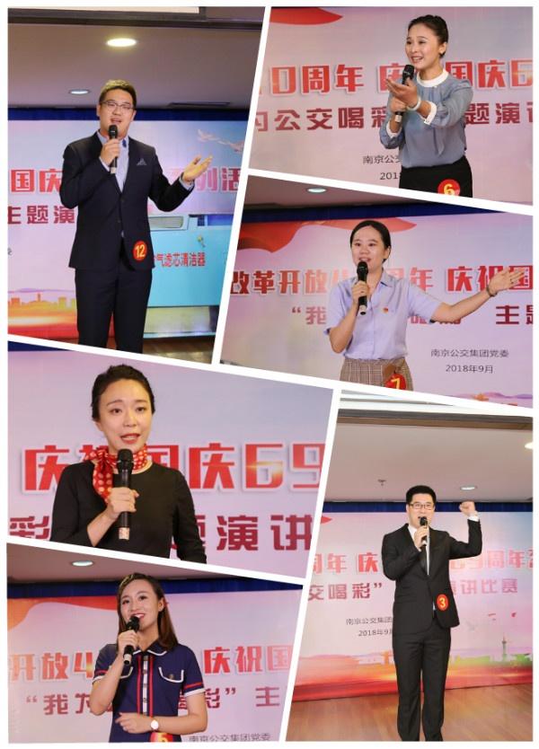 比赛现场, 14名选手以讲故事、说变化、谈感受、颂恩情及表决心的方式赞颂了改革开放的伟大成就,抒发了炙热的爱国爱党之心,描绘了公交人感人至深的生活画卷。演讲中选手们个个声情并茂,充分运用肢体动作增加感染力,让在场观众与演讲选手产生了强烈的共鸣。来自江苏交广网FM997“金陵之声”主持人文岚老师、江苏省著名资深播音主持专家靳浩老师、南京广电集团“双优”主持人单通老师在点评时,分享了自己与公交的故事,表达了自己的公交情结和对公交人执着的情感,他们对公交人的真善美和在平凡的岗位上坚守初心使命的真人真事真感情表示了由衷的敬意。