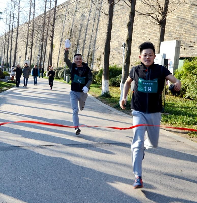 本次活动分为竞赛组和健身组:男子竞赛组30人,全程约10公里;女子竞赛组15人,全程约7公里;健身组120人,全程约3.5公里。活动中,竞赛组争先恐后,你追我赶,向着终点奋力前进。健身组浩浩荡荡的队伍洋溢着喜迎新年的欢乐气氛,大家相互鼓励,相互加油。